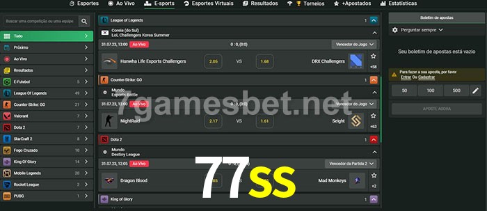 A aposta 77ss oferece aos jogadores a experiência mais conveniente de apostas em eSports!